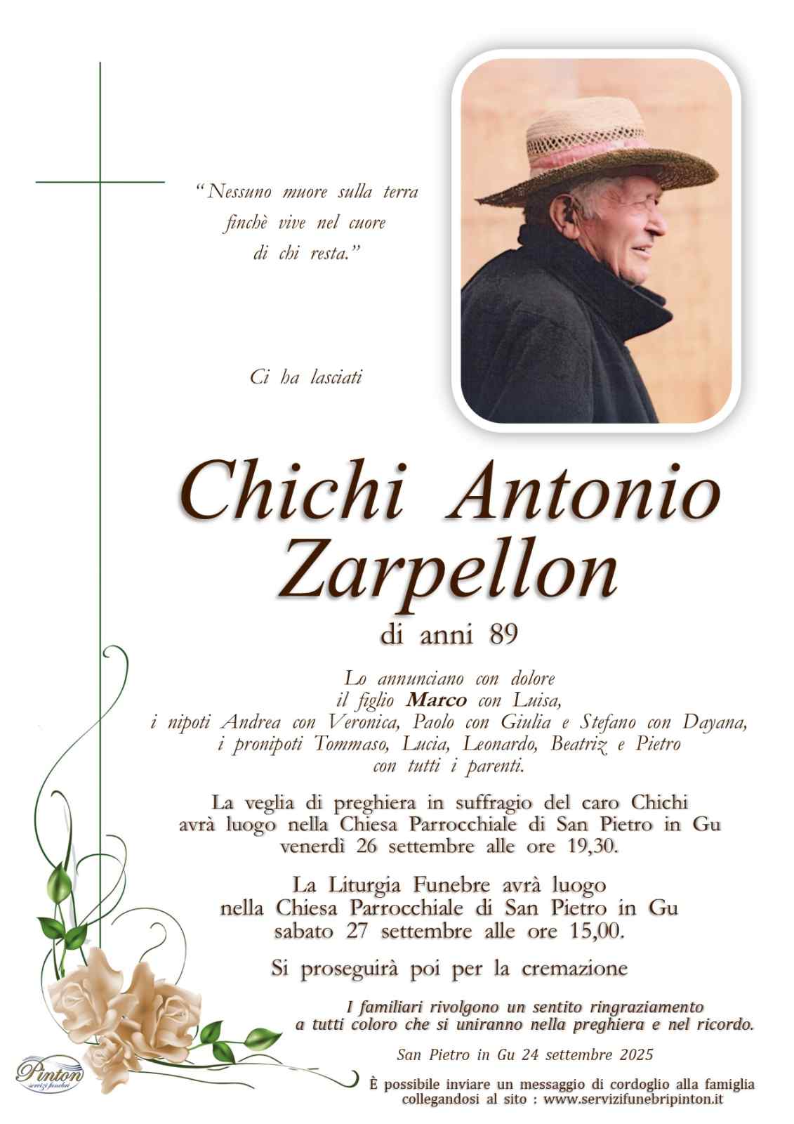 Invia un messaggio di condoglianze